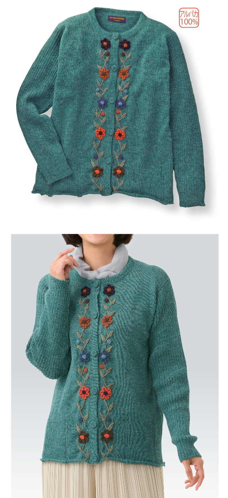 アルパカ100%刺しゅうの花カーディガン